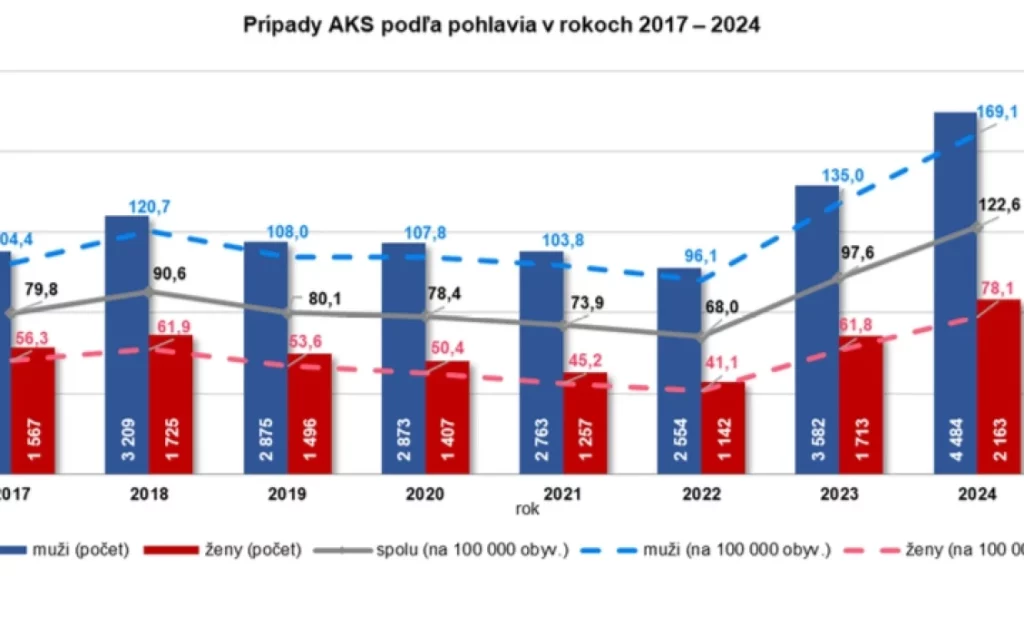 Od roku 2022 výrazne vzrástol počet hospitalizácií pre akútny koronárny syndróm (AKS), šokujú relevantnou štatistikou Topky. Odvolávajú sa na údaje Národného centra zdravotníckych informácií (NCZI), prezentované aj v grafe. Topky však nekladú otázky, NCZI tak nemusí odpovedať na hlavnú otázku, ktorú sa už pýtajú stovky čitateľov.
