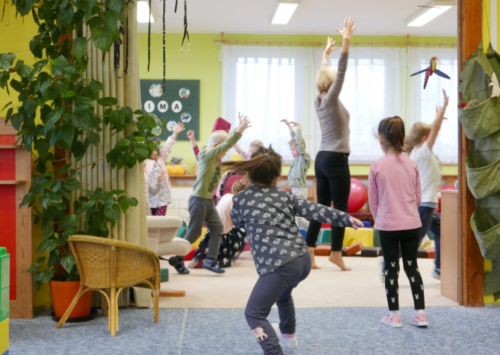 Eva: Nie je nutné a ani to nie je žiaduce, stále pracovať s celou skupinou naraz. Učiteľ sa môže venovať podľa potreby vždy určitej skupine detí a sústrediť sa na ich aktuálne potreby s rešpektom k ich vývojovej úrovni. Môže riešiť zložitejšie úlohy so staršími deťmi, zatiaľ čo sa mladšie hrajú, a naopak.