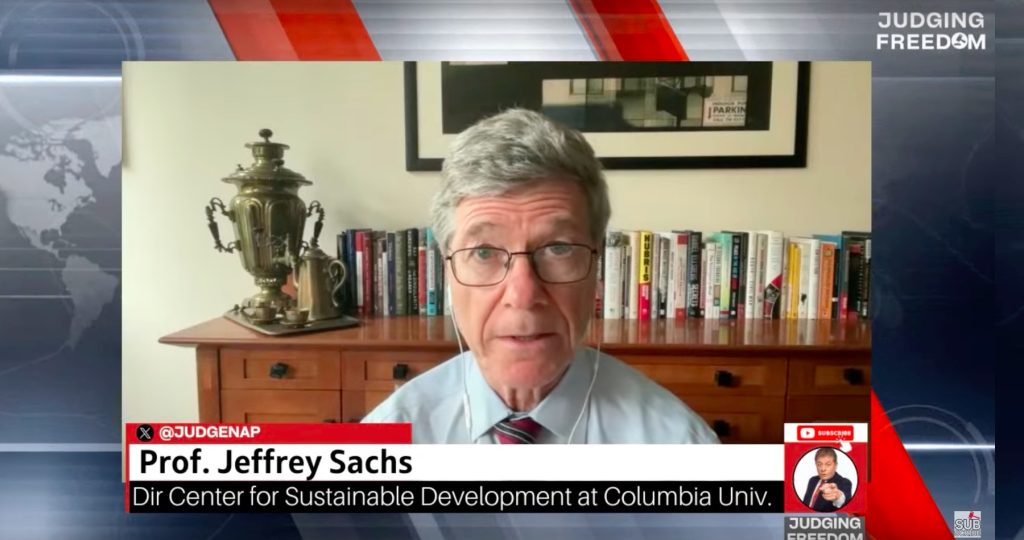 „V dnešnom svete neexistuje žiadna diplomacia. Existuje len vojna a sila. Ak s nami nebudete súhlasiť, všetkých vás zabijeme. To je to, čo povedal prezident Trump,“ konštatoval s poľutovaním uznávaný americký ekonóm, poradca vlád po celom svete, špeciálny poradca generálneho tajomníka OSN, riaditeľ siete OSN na riešenie trvalo udržateľného rozvoja a šéf Centra pre trvalo udržateľný rozvoj na Kolumbijskej univerzite Jeffrey Sachs, ktorý v podcaste Judge Napolitano – Judging Freedom, odvysielanom 13. júna 2025 komentoval aktuálnu geopolitickú situáciu.