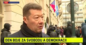 Predseda Poslaneckej snemovne Parlamentu Českej republiky Tomio Okamura (SPD) v pondelok 17. novembra 2025 počas spomienky na udalosti, ktoré sa...