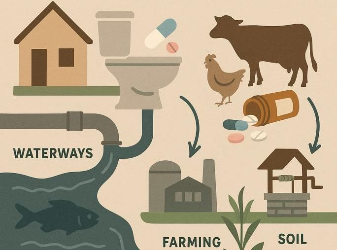 K tomu pripočítajte odpad z nemocníc a farmaceutických závodov, hnoj a odtok z hospodárskych komplexov (kde antibiotiká a hormonálne stimulanty tečú ako voda), ako aj milióny balení expirovaných liekov, ktoré ľudia jednoducho vyhodia do koša.