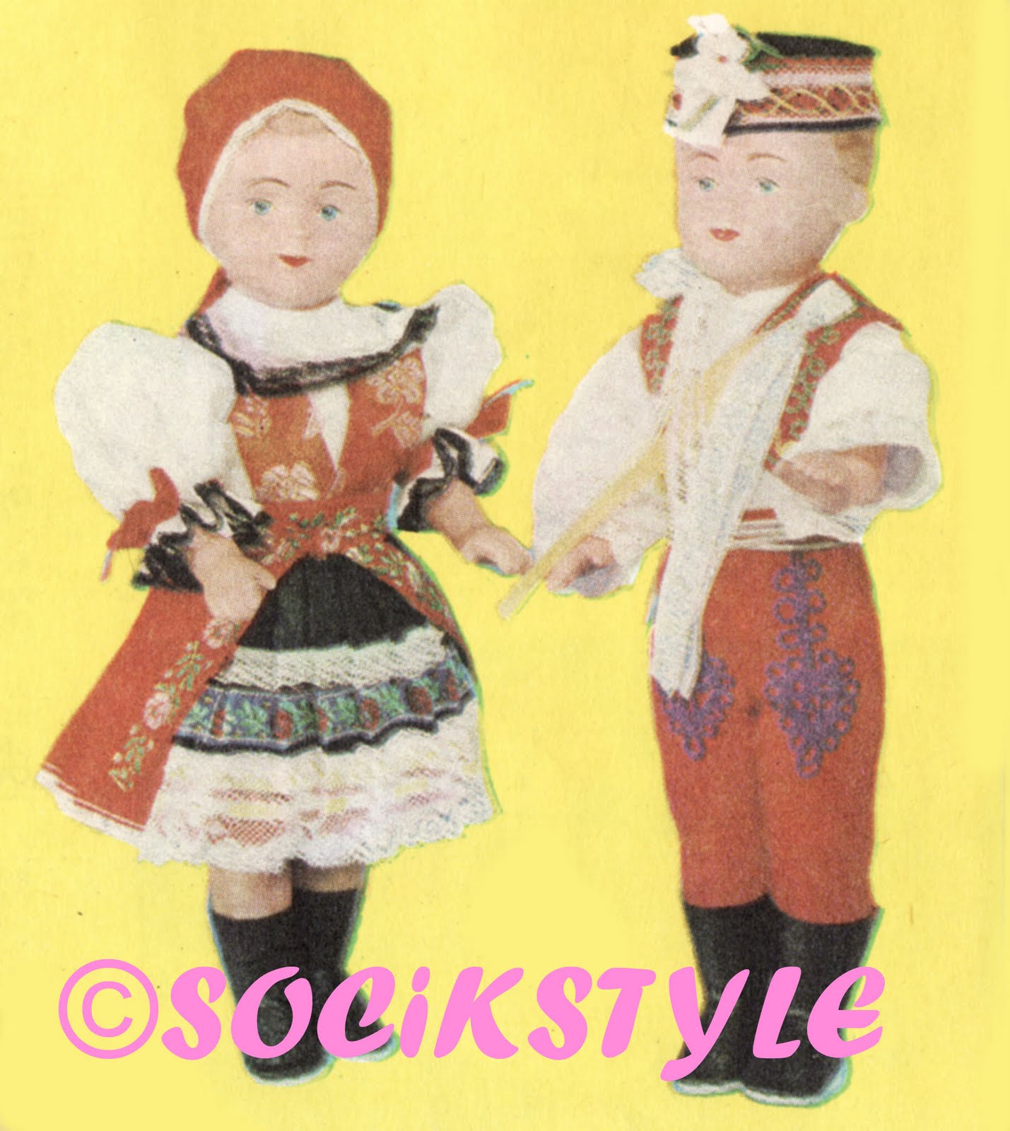 Tatranský pár-30cm-120Kčs a Piešťanský kroj-30cm-34Kčs:Lidová tvorba Uherský Brod
