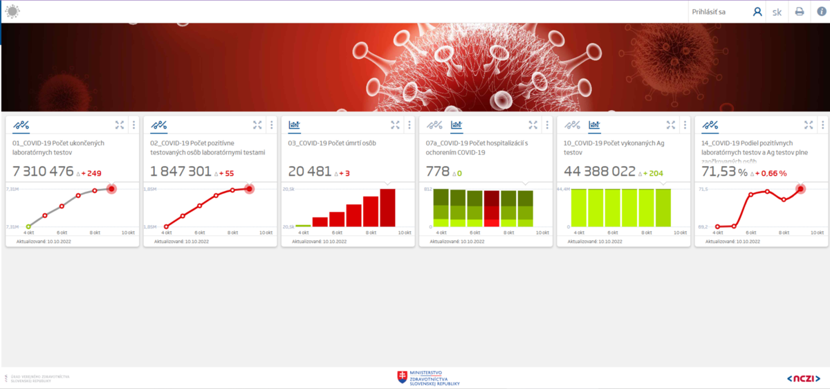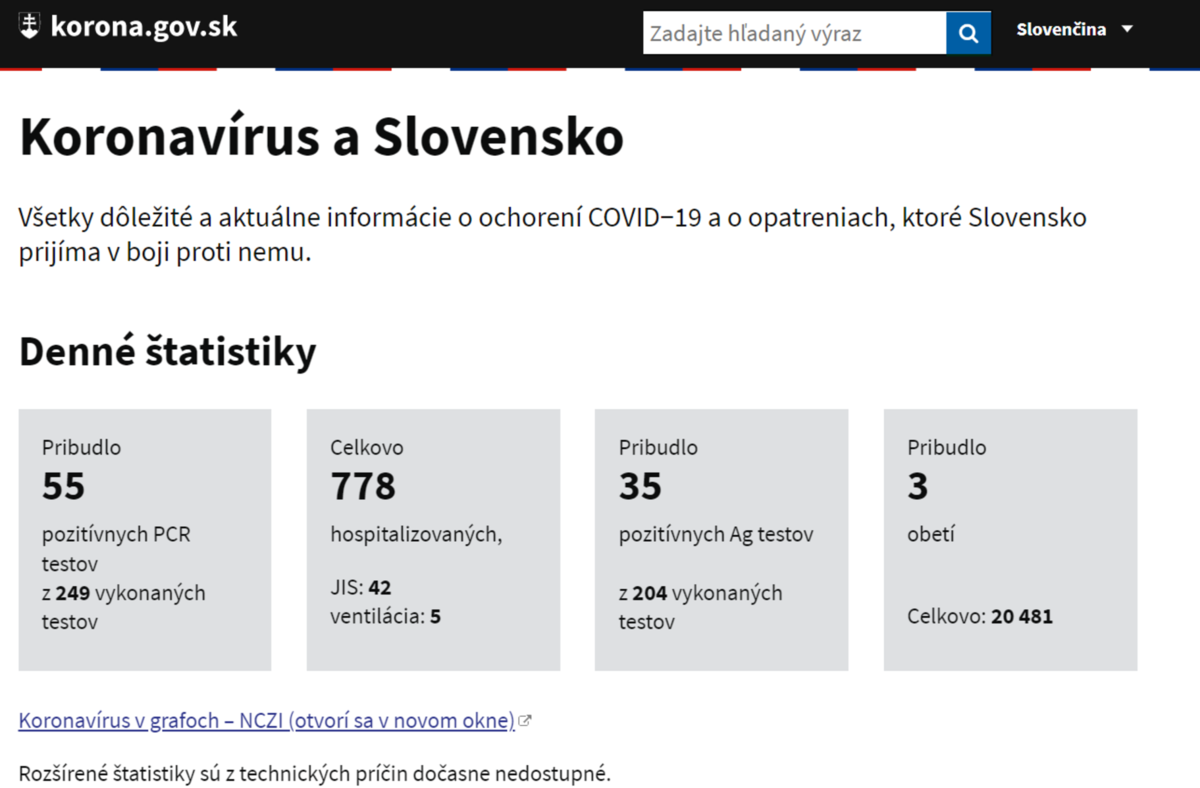 Na stránke Národného centra zdravotníckych informácií sa dnes objavujú len informácie o infikovaných a počty pacientov s covid v nemocniciach.
