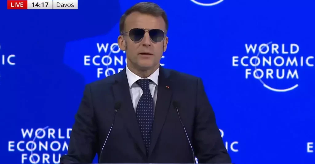 Nie nedostal ďalšiu bitku od “manželky”, Macron vystupuje v Davose so slnečnými okuliarmi kvôli problémom s očami: