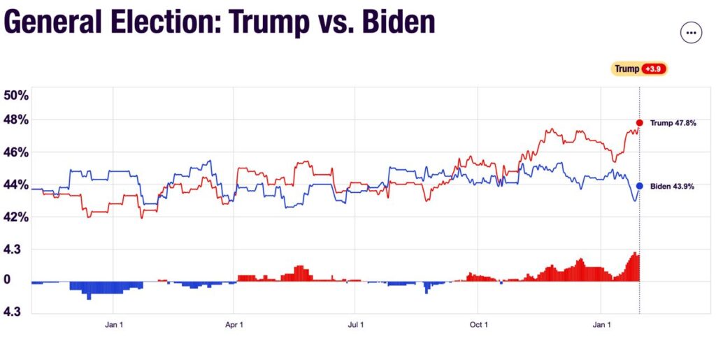 Súčasné rozdelenie Spojených štátov je nácvikom toho, čo by sa mohlo stať počas volieb, ak by sa demokrati pokúsili zatknúť Trumpa alebo realizovať veľké poštové podvody. Potom spomínaných 26 štátov jednoducho neuzná výsledky volieb. No, zatiaľ čo Amerika uviazla v stave rozporov, Trumpov rating láme nové rekordy. A jeho náskok pred Bidenom dosiahol rekordné 4 body. Nestalo sa tak ani v roku 2016, ani v roku 2020.