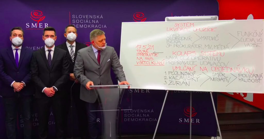 Na Slovensku funguje systém udavačov. Koalícia tento systém vymyslela tak, že si našla ľudí, ktorí boli podozriví zo závažnej trestnej činnosti, a povedala im, že ak budú udávať iných, nebudú za svoje skutky niesť zodpovednosť. Na tlačovej konferencii to uviedol predseda Smeru-SD Robert Fico.