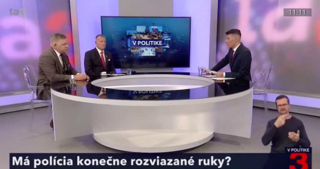 Obaja diskutujúci hovorili aj o polícii, túto tému otvoril moderátor Rastislav Iliev hneď na úvod, keď pustil v štúdiu časť videa z tlačovky policajného prezidenta Štefana Hamrana, v ktorom ten ostro kritizoval Fica. Šéf Smeru v reakcii pripopmenul, že len nedávnom skončilo rokovanie zástupcov koalície vo vládnom hoteli Bôrik, keďže diskusia sa nahrávala práve v piatok (12,8.).