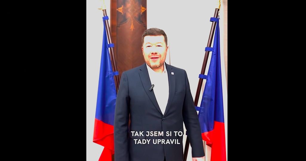 „Tak som prišiel do svojej novej kancelárie v Snemovni. A pozerám sa, čo tu mám po pani Pekarovej Adamovej. Tak som si to tu upravil po svojom,“ povedal Okamura vo videu, na ktorom je vidieť, ako vlajku Európskej únie vymenil za druhú vlajku Českej republiky.